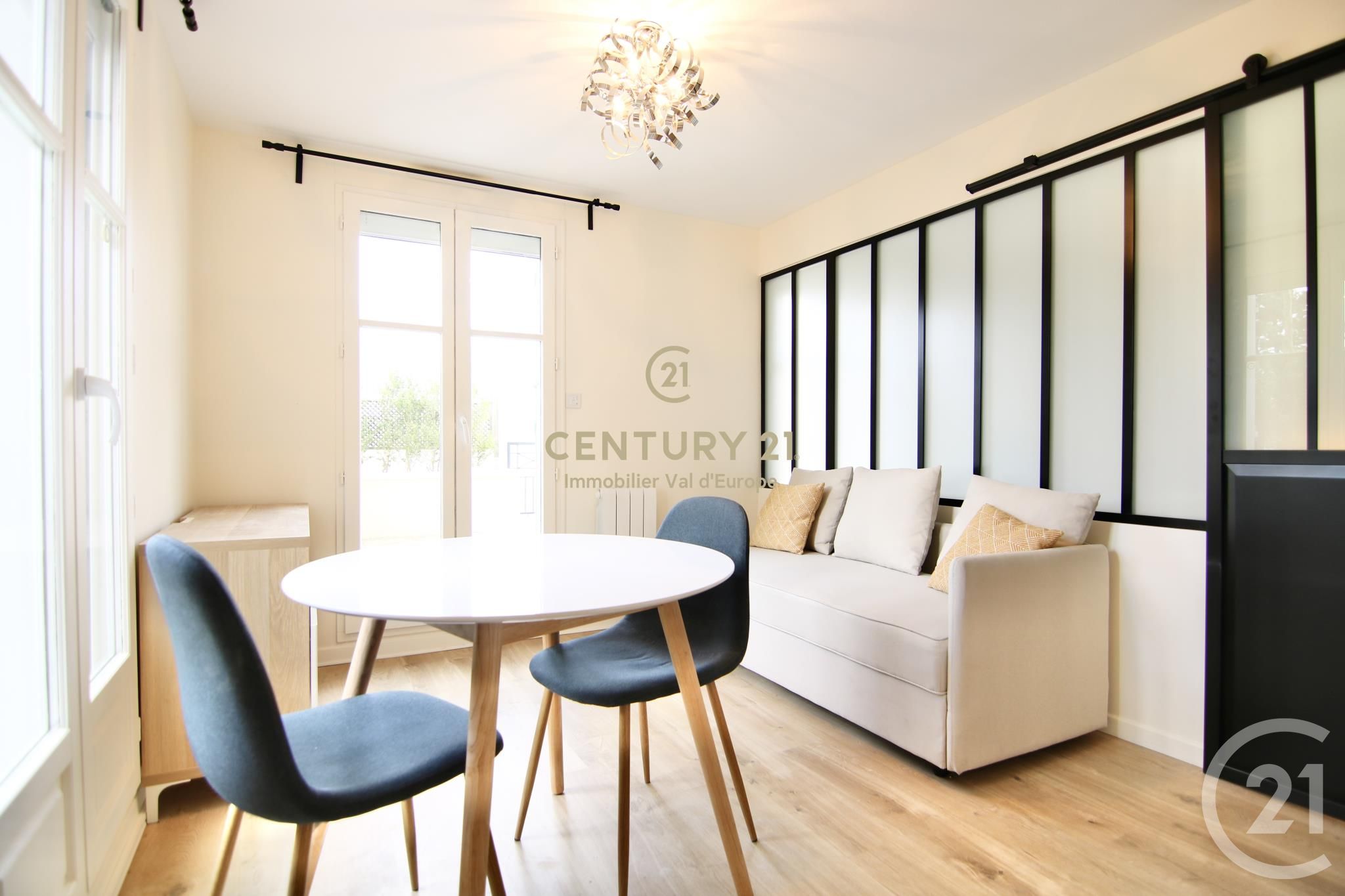 Century 21 Immobilier Val d'Europe vous propose un appartement 2 pièces MEUBLE à Bailly-Romainvilliers, au RDC, comprenant un séjour, une chambre, une cuisine aménagée et équipée, une salle de bain avec WC et deux terrasses + 1 place de parking en sous-sol.